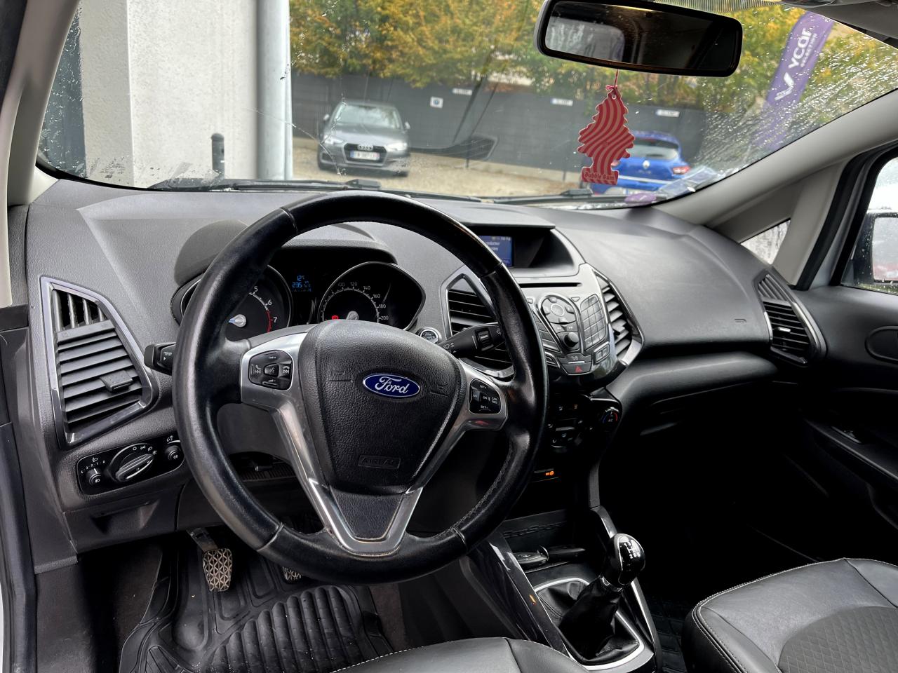 2 Fixations Isofix à l'arrière3 appuie-tête arrièreABS avec aide au freinage d'urgence + ESP + anti-patinageAccoudoir sur siège conducteurAir conditionnéAirbag genoux conducteurAirbags frontaux, latéraux (thorax) et rideauxAlarme périmétriqueAlerte de ceinture de sécurité conducteur et passagerAlerte de dégonflage des pneumatiquesBanquette arrière réglable en inclinaison, rabattable à 60/40 d'une mainCache-bagagesCeintures de sécurité avant réglables en hauteurChauffage auxiliaireColonne de direction réglable en hauteur / profondeurCrochets d'arrimageDésactivation de l'airbag du passager avantDirection assistée électrique (EPAS)Eclairage de courtoisie avant, arrière et du coffreExtinction différée des pharesFeux de brouillard avant avec entourage noirFord EasyFuelIndicateur de changement de vitessesJantes en acier 16 '' avec enjoliveursKit de réparation pneumatiqueOrdinateur de bordPare-chocs arrière couleur carrosserie avec jupe sombePare-chocs avant couleur carrosserie avec jupe sombePare-soleil conducteur et passager avec miroirPeinture non métalliséePhares avant antibrouillard intégrant les feux de jourPoches aumonières au dos des sièges conducteur et passagerPoignée de hayon chroméePoignées de portes couleur carrosseriePommeau de levier de vitesses en cuirPrise 12VRange-lunettesRétroviseurs extérieurs réglables électriquement couleur carrosserieSécurité enfants sur portes arrièreSiège conducteur avec réglage lombaireSiège conducteur réglable avant/arrière et en hauteur manuellementSiège passager réglable avant/arrièreSignature lumineuse à LEDSuspensions AV indépendantes de type MacPherson et barres anti-roulisSystème audio : radio/CD avec prise USBTapis de sol avant et arrièreTiroir de rangement sous siège passagerTissu Patna / Vigo teinte Dark Shadow / Noir CharcoalVerrouillage centraliséVitres avant et arrière électriques et vitre conducteur à impulsionVitres teintéesVolant 3 branchesVolant multifonctions cuir