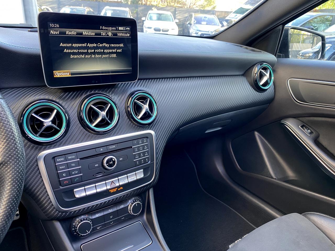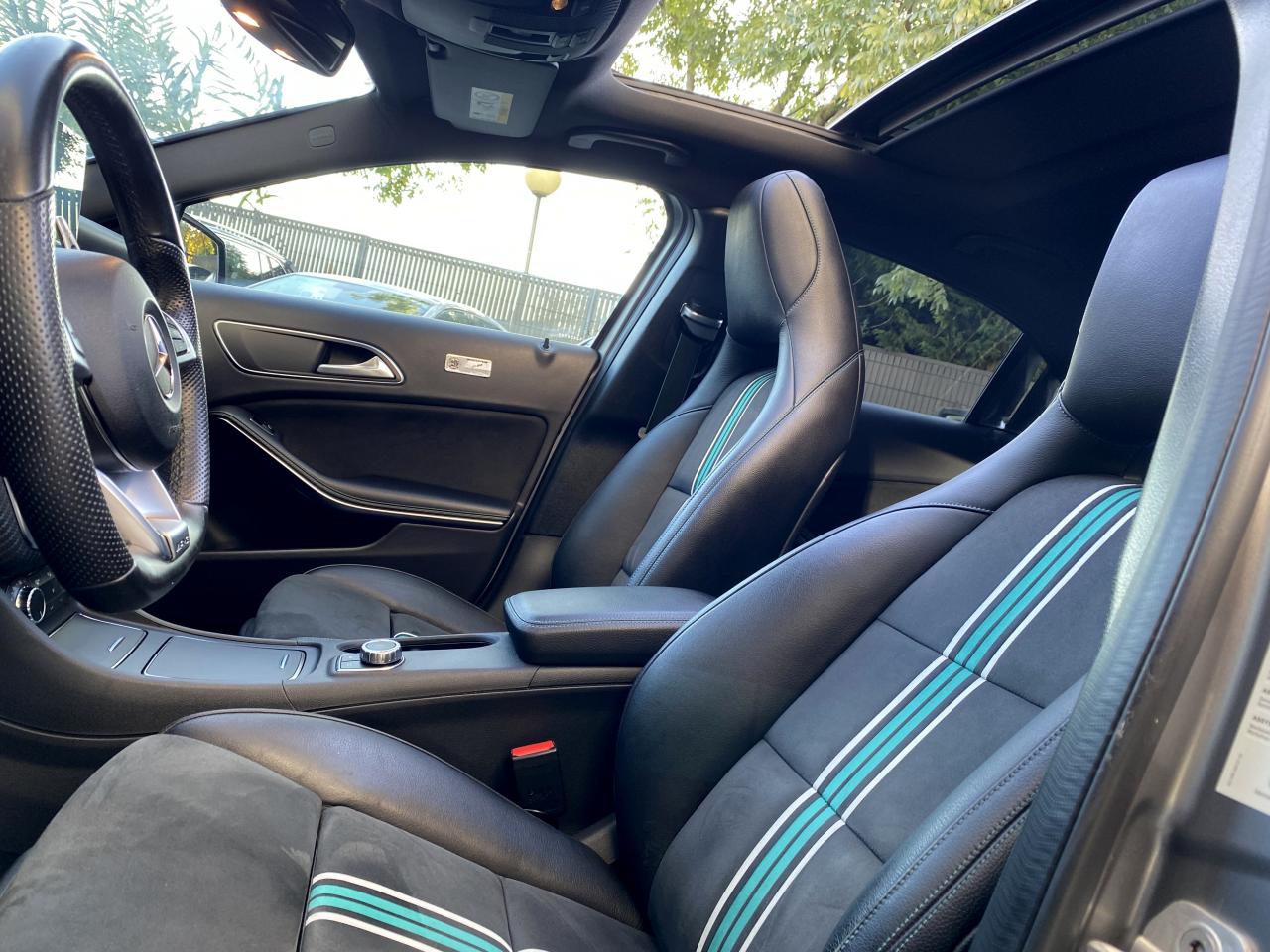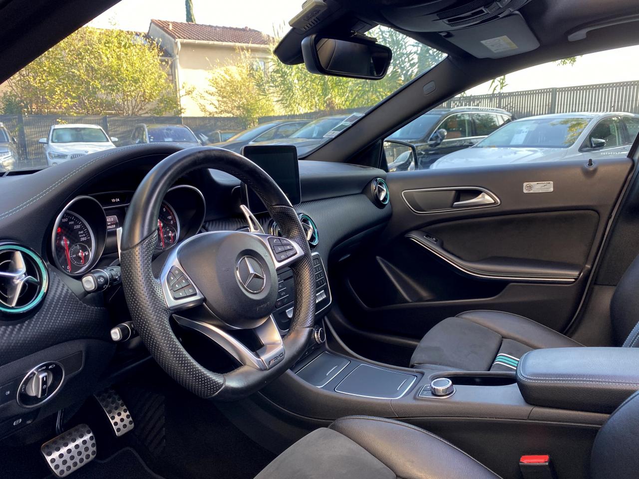 Attention Assist : système de détection de somnolenceéclairage led ambiance intérieur4 roues motricesABSaccoudoir centralaide au freinage d'urgenceallumage automatique des feuxAudio 20 CD avec écran couleur 17,8 cm (7") et pré-installation pour Garmin MAP PILOT. Radio, double tuner, lecteur CD, Bluetooth, 2 ports USB et 1 SD card. Interface Média pour iPod ou iPhone intégréeauto-radio commandé au volantbluetoothcaméra de reculclimatisationCompatibilité Apple CarPlay et Android Autocontrôle pression des pneusdirection assistéefermeture centraliséefixation isofixGPS couleurintérieur cuir/alcantarajantes alliagelimiteur de vitesseordinateur de bordpeinture intégralephares à LEDphares antibrouillardphares xenonrégulateur de vitesserétroviseurs électriquesrétroviseurs degivrantsradar arrière de detections d'obstaclesradar avant de detections d'obstaclessièges électriquessièges chauffantssièges réglables en hauteursieges sportstop & starttoit ouvrant électriqueverrouillage automatique des portes en roulantvitres électriquesVolant multifonctionsVolant reglableBoîte de vitesses automatique à double embrayage 7 rapports 7G-DCT sport avec palettes de commandes au volantCaméra de recul avec lignes de guidage et vue 180°COLLISION PREVENTION ASSIST PLUS: système d'avertissement des risques de collision avec assistant de freinage adaptatifInserts décoratifs vert pétrole sur les jupes avant et arrièreJantes alliage AMG 46 cm (18") multibranches en noir avec cerclage vert pétrole avec pneus 225/40 R18Pack AMG Line extérieurPack d'éclairage intérieurPack GarminPack Motorsport Edition InterieurPack Sport BlackProjecteurs hautes performances à technologie LED comprenant les feux de jours et la fonction d'éclairage en bleu "Coming Home"Sièges avant chauffantsTEMPOMAT (régulateur de vitesse) et SPEEDTRONIC (limiteur de vitesse)