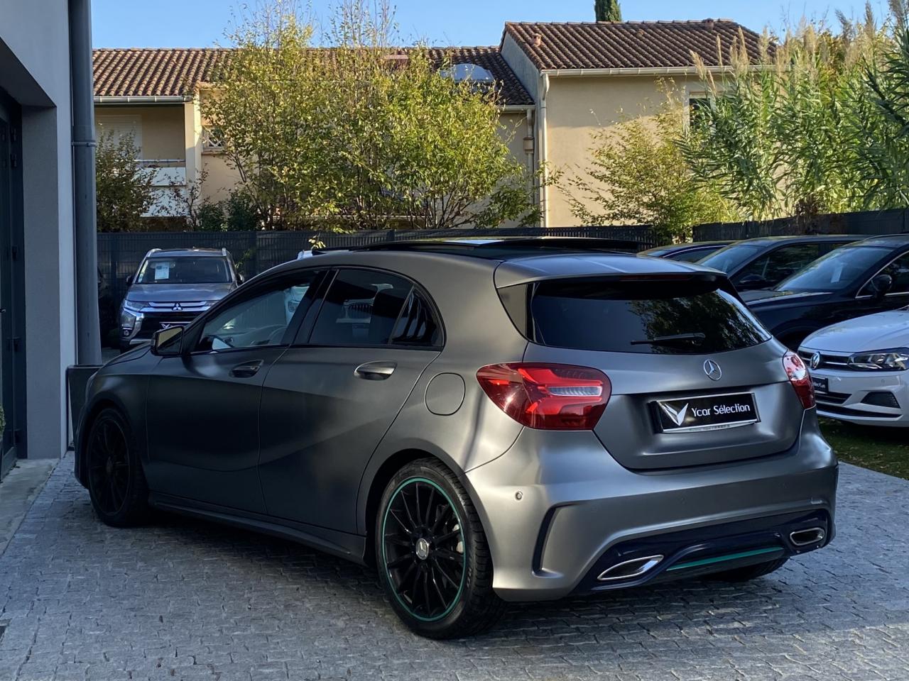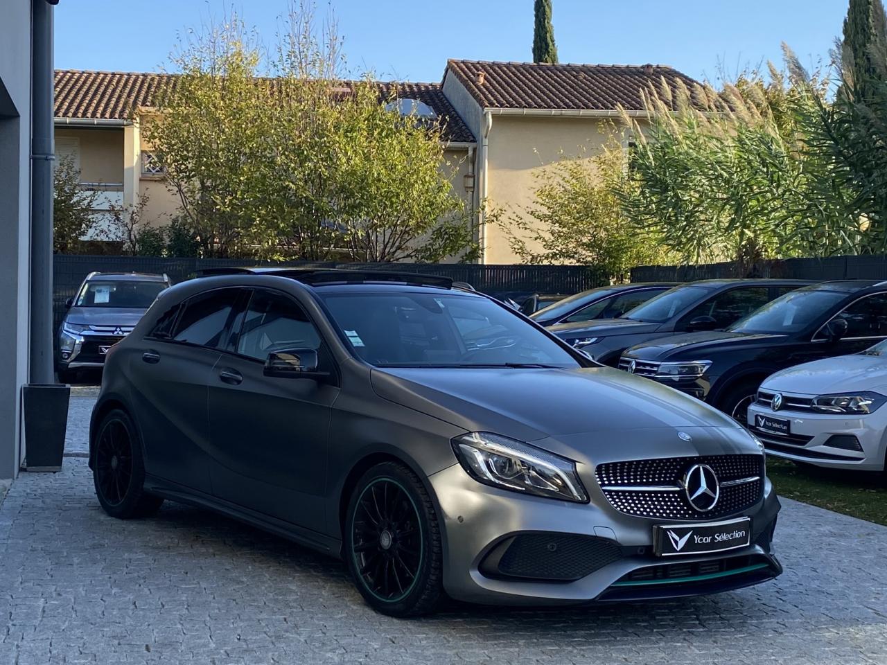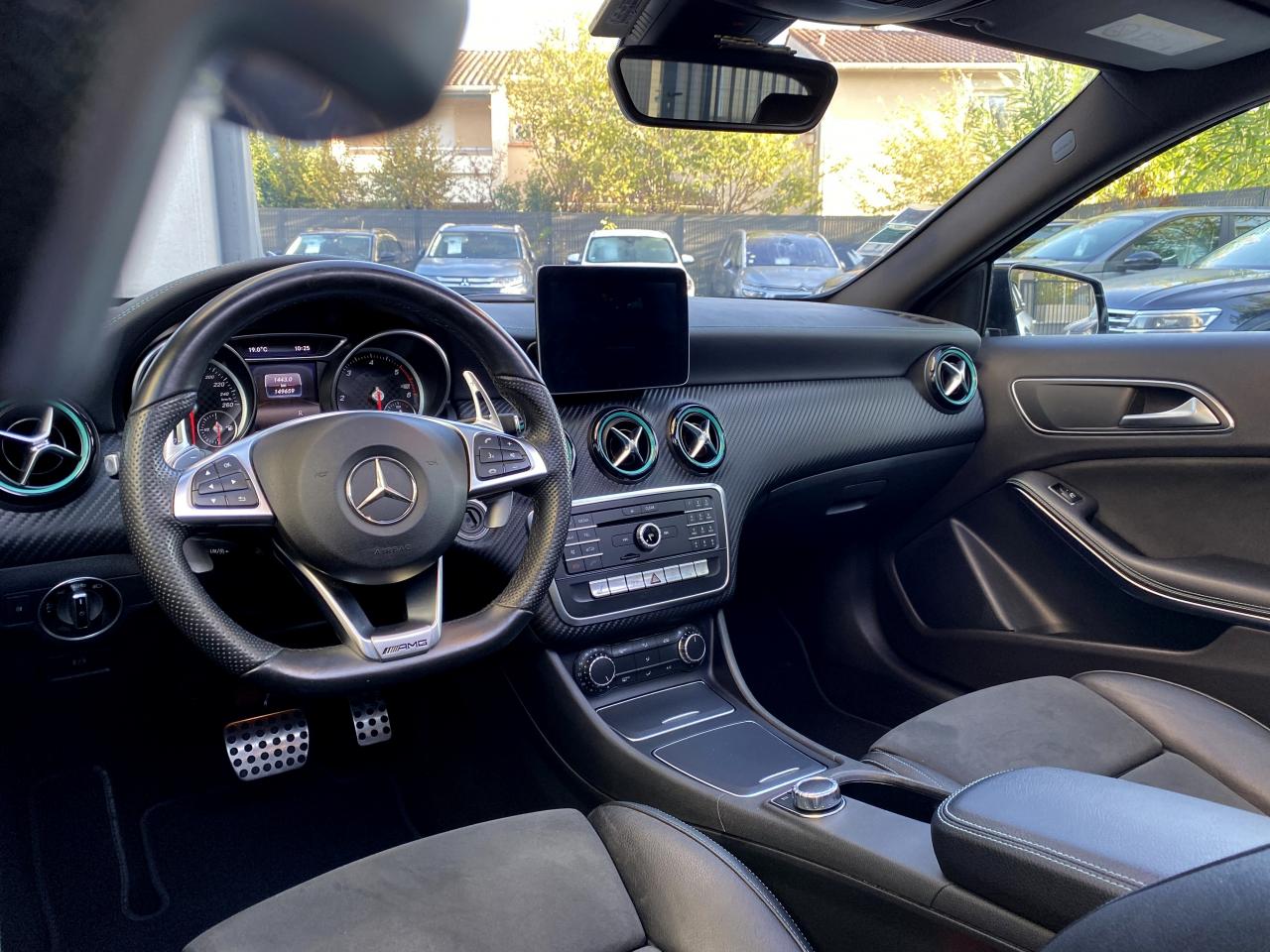 Attention Assist : système de détection de somnolenceéclairage led ambiance intérieur4 roues motricesABSaccoudoir centralaide au freinage d'urgenceallumage automatique des feuxAudio 20 CD avec écran couleur 17,8 cm (7") et pré-installation pour Garmin MAP PILOT. Radio, double tuner, lecteur CD, Bluetooth, 2 ports USB et 1 SD card. Interface Média pour iPod ou iPhone intégréeauto-radio commandé au volantbluetoothcaméra de reculclimatisationCompatibilité Apple CarPlay et Android Autocontrôle pression des pneusdirection assistéefermeture centraliséefixation isofixGPS couleurintérieur cuir/alcantarajantes alliagelimiteur de vitesseordinateur de bordpeinture intégralephares à LEDphares antibrouillardphares xenonrégulateur de vitesserétroviseurs électriquesrétroviseurs degivrantsradar arrière de detections d'obstaclesradar avant de detections d'obstaclessièges électriquessièges chauffantssièges réglables en hauteursieges sportstop & starttoit ouvrant électriqueverrouillage automatique des portes en roulantvitres électriquesVolant multifonctionsVolant reglableBoîte de vitesses automatique à double embrayage 7 rapports 7G-DCT sport avec palettes de commandes au volantCaméra de recul avec lignes de guidage et vue 180°COLLISION PREVENTION ASSIST PLUS: système d'avertissement des risques de collision avec assistant de freinage adaptatifInserts décoratifs vert pétrole sur les jupes avant et arrièreJantes alliage AMG 46 cm (18") multibranches en noir avec cerclage vert pétrole avec pneus 225/40 R18Pack AMG Line extérieurPack d'éclairage intérieurPack GarminPack Motorsport Edition InterieurPack Sport BlackProjecteurs hautes performances à technologie LED comprenant les feux de jours et la fonction d'éclairage en bleu "Coming Home"Sièges avant chauffantsTEMPOMAT (régulateur de vitesse) et SPEEDTRONIC (limiteur de vitesse)