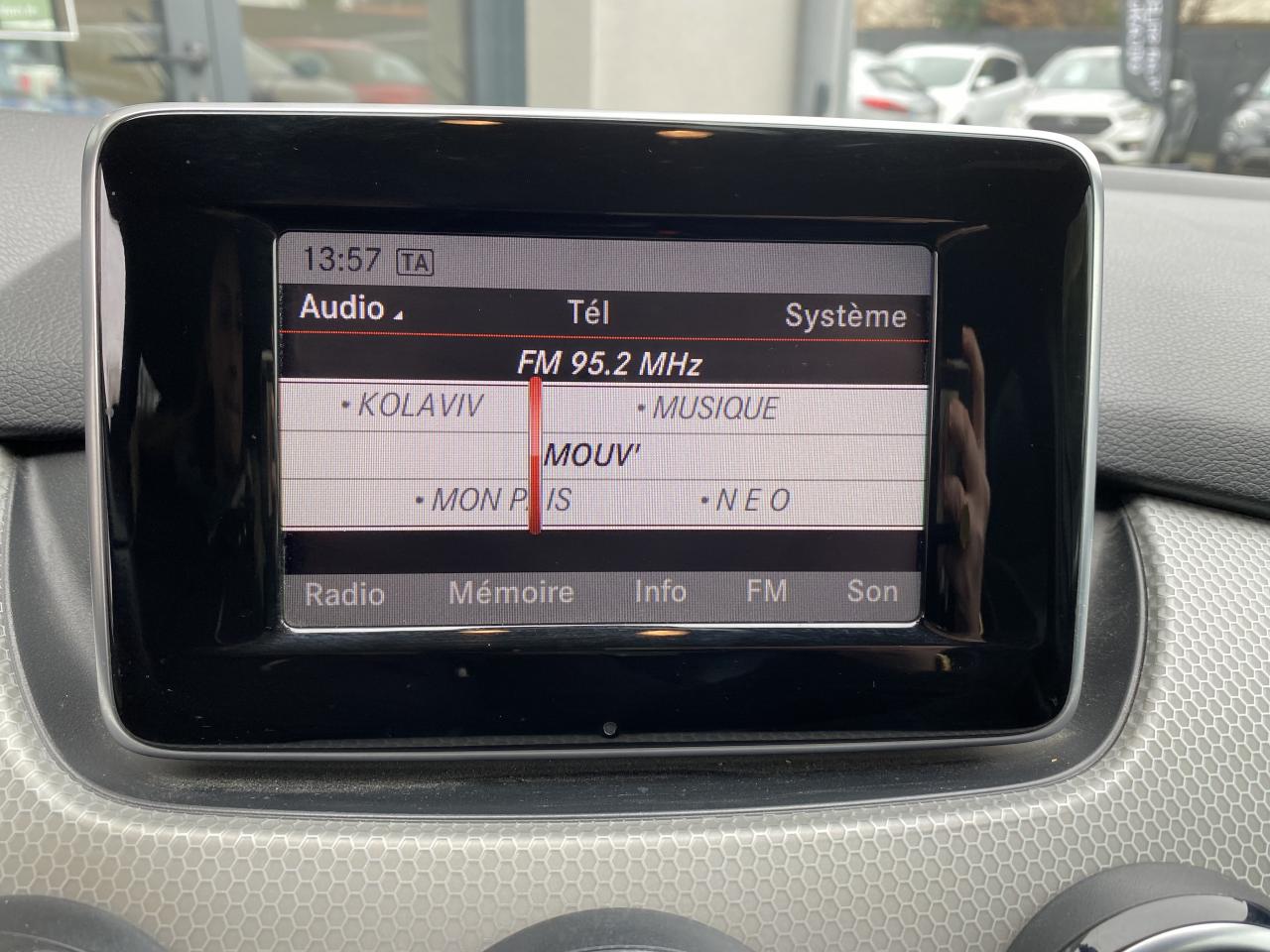 ABS (antiblocage de roues) et ASR (antipatinage)Accoudoir avant avec espace de rangementbluetoothAide au démarrage en côteAirbag genoux côté conducteurAirbags bassin intégrés aux sièges conducteur et passager avantAirbags frontaux à plusieurs seuils de déclenchement pour le conducteur et le passager avantAirbags rideauxAllumage automatique des pharesAttention Assist : système de détection de somnolenceAvertisseur de perte de pression des pneusBaguette de protection de seuil de chargement chroméeBaguettes de ceinture de ligne chroméesBaguettes de seuil chroméesBaguettes décoratives chromées sur les pare-chocs avant et arrièreBanquette arrière rabattable (2/3 -1/3)BAS (freinage d'urgence assisté)Boîte à gants éclairéeCache-bagages à enrouleurCaméra de recul avec lignes de guidageCasier de rangement sous le plancher du coffreCeintures de sécurité à 3 points à toutes les placesCiel de pavillon en tissu noirClé design chroméeClignotant avec fonction confortClimatisation THERMATIC avec réglage manuel de la température et de la distribution d'airCOLLISION PREVENTION ASSIST : système d'avertissement des risques de collisionColonne de direction réglable mécaniquement en hauteur et en profondeurCombiné d'instruments à 4 cadrans rond avec éclairage blanc sur fond noirConnexion Bluetooth pour téléphone portable et clavier numérique intégréCrochet pour sac dans l'espace de chargementDétecteur automatique de siège-enfant à transpondeur sur le siège passager avantDétecteur de pluie à 2 seuils de déclenchementDirection paramétrique à assistance variableDisques de freins perforés à l'avant, étriers de freins avec monogramme "Mercedes-Benz"Echappement double sortieÉléments décoratifs en finition chrome soyeux mat sur les buses d'aération, les commandes de l'éclairage, des vitres et le levier de vitesseESP (régulation de comportement dynamique)Feux arrière de brouillardFeux de jour cerclés de chromeFeux de jour rond à technologie LEDFeux de stop adaptatifsFeux et clignotants arrière à technologie LEDFonction d'arrêt/redémarrage "Stop/Start ECO" avec commutateur de désactivation manuelleFrein de parking électriqueGarnitures intérieures en tissu/similicuir ARTICO avec surpiqûresGrille de calandre à 2 lamelles dans le ton argent brillant avec inserts chromésIndicateur de température extérieureInserts décoratifs en finition alvéolée argentInterfaces USB et Aux-In dans l'accoudoir central avantISOFIX : fixations des sièges-enfants arrière (places extérieures)Jantes alliage 17" design 5 branches avec monte 225/45 R17Kit anti-crevaison (Tirefit)Lève-vitres électriques (x4) à commande séquentielle et dispositif anti-pincementOrdinateur de bordPare-choc arrière avec insert noirPartie centrale des contre-portes en similicuir ARTICO avec surpiqûres ton sur tonPédalier sport en acier inoxydable brossé avec picots en caoutchoucPlancher du coffre réglable en hauteurPrise 12 V à l'arrièrePrise 12 V dans l'espace de chargementProjecteurs Bi-Xénon avec lave-phares, feux de jour, feux de position et clignotants à technologie LEDRadio Audio 20 avec écran couleur 15 cm (5,8"), double tuner et lecteur CD compatible MP3/WMA/AACRétroviseurs et poignées de porte peints dans le ton carrosserieRétroviseurs extérieur gauche et intérieur jour/nuit automatique et Rétroviseurs extérieur rabattables électriquementRétroviseurs extérieurs électriques chauffants et asphériques avec rappels de clignotant intégrésSécurité enfant avec verrouillage manuel des portes arrière et électrique des vitres arrièreSélecteur multifonctions chroméSièges avant confort avec design spécifique et réglage manuel de l'inclinaison des assises des sièges et de la hauteur du siège passagerSurpiqûres sur les accoudoirsSuspension et train de roulement confort rabaissésTEMPOMAT (régulateur de vitesse) et SPEEDTRONIC (limiteur de vitesse)Verrouillage centralisé à télécommande avec fonction verrouillage automatique désactivableVitrage teinté vertVolant multifonctions à 12 touchesVolant sport 3 branches en cuir avec zones de préhension perforées et insert chromé
