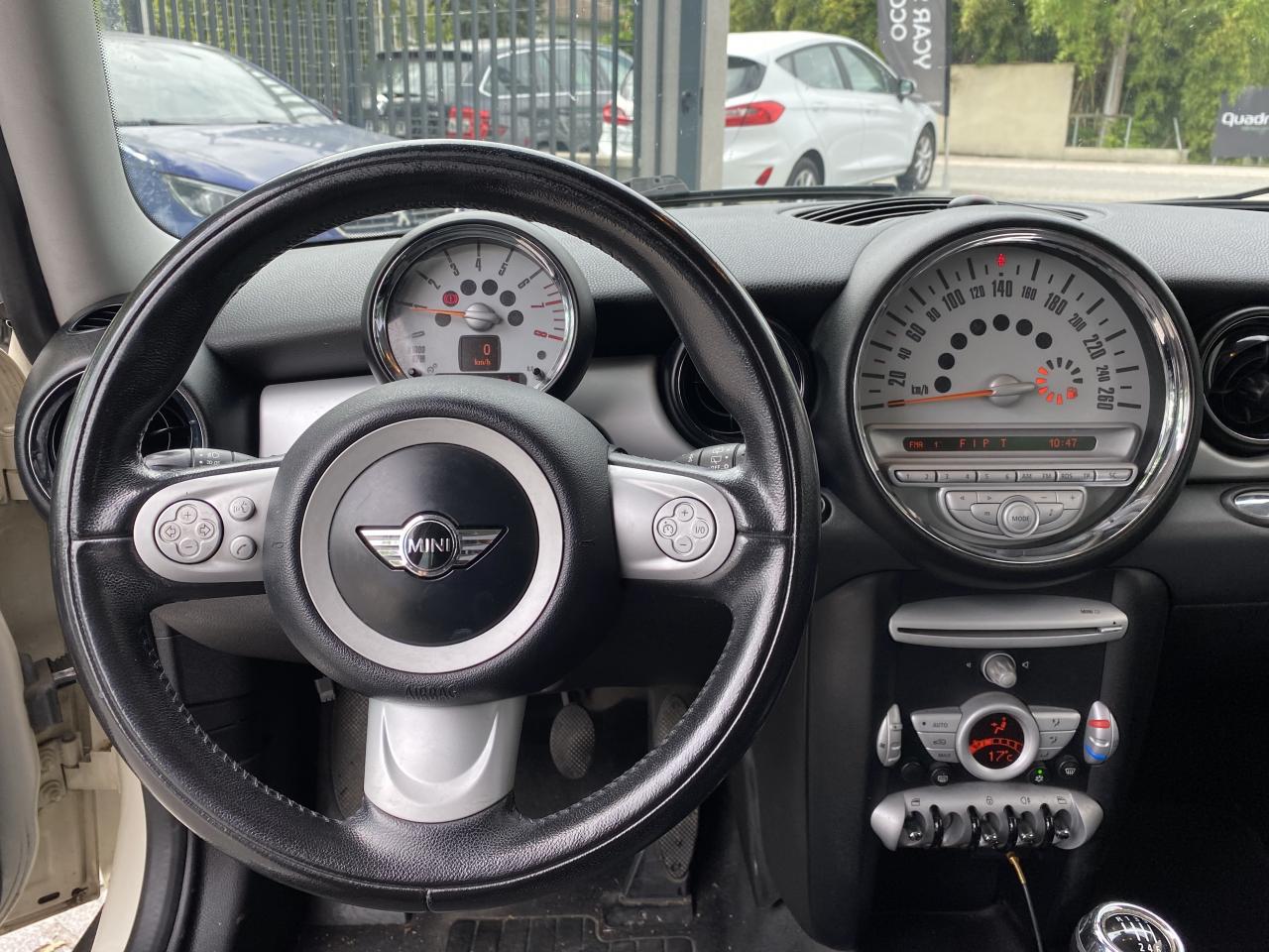 2 Pare-soleil avec miroir + 3ème pare-soleil latéral pour le conducteur6 AirbagsABS (Antiblocage de roues)Anti-démarrage électroniqueAnti-démarrage électronique EWS IVAutoradio MINI CD avec prise Aux-In et 6 haut-parleursBanquette AR rabattable 50/50Barres de calandre chroméesBoîte de vitesses manuelle 6 rapportsBouton de démarrage “Start/Stop”Calandre et poignée de hayon chroméeClimatisation manuelleContour chromé des projecteurs avant et des feux arrièreContrôle de freinage en courbe CBCContrôle dynamique de la stabilité DSCDeuxième clé avec radiocommandeDirection à assistance électriqueDirection à assistance électrique variable en fonction de la vitesseEcrous de roues antivolFixations ISOFIX aux places arrièreFonction d'arrêt et de redémarrage automatique du moteurFreins à disques à l'avant (ventilés) et à l'arrièreGarnissage des sièges en tissu CosmosIndicateur de changement de rapportIndicateur de perte de pression des pneumatiques (RPA)Inserts décoratifs “Fine White Silver” laqué argentISOFIX : Ancrages normalisés pour sièges enfantsJantes en alliage léger 15'' design "5-Star Spooler"Lève-vitres et rétroviseurs extérieurs électriquesPartie inférieure du tableau de bord et accoudoirs de portes en plastique couleur Dark GreyPoignée de hayon chroméePoignées de portes chroméesPrise 12V entre les porte-gobelets avantRadio MINI Wave CD avec prise Aux-In et 6 HPSellerie tissu "Cosmos"Sortie d échappement à droite (Chromée)Sortie d'échappement simple, droite et chroméeSystème d'accès aux places arrière Easy-EntrySystème de récupération de l'énergie au freinageToit et coques de rétroviseurs de couleur blanche ou noireTriangle de présignalisation avec kit de premiers secoursTriangle de présignalisation et trousse à pharmacieVerrouillage centraliséVerrouillage centralisé à distanceVerrouillage centralisé des portes, du coffre et de la trappe à essenceVolant cuir 2 branchesVolant Cuir 2 branches réglable en hauteur et en profondeur