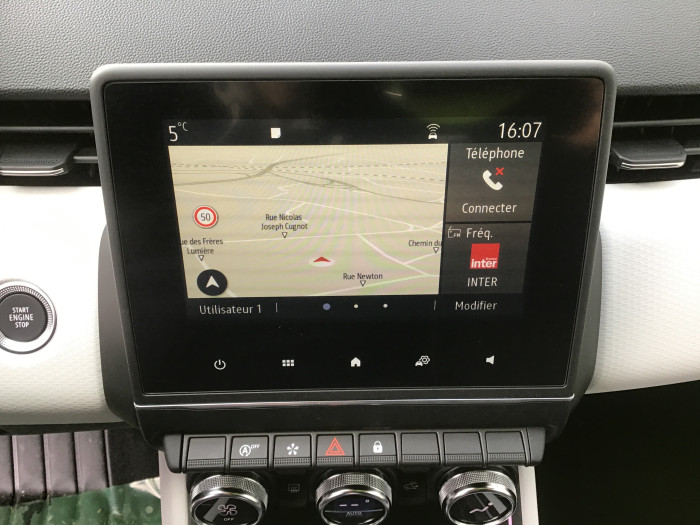 Accoudoir central avec rangementAide au demarrage en coteAide au freinage actif d'urgence avec detection pietons (AEBS City + Inter Urbain + Pieton)Aide au parking ARAirbag passager deconnectableAirbags frontauxAirbags lateraux AVAlerte de survitesseAllumage automatique des essuie-glacesAntenne RequinAppuie-tetes ARAssistance au freinage d'urgence (A.F.U.)Assistant maintien de voieCamera de reculCarte Renault "Mains libres"Climatisation automatiqueEASY LINK 7" : Systeme multimedia connecte avec ecran 7" avec Navigation et Radio Numerique DABEclairage AV et AR Full LED Pure VisionFeux AR avec signature a LEDFeux de stop a LEDFrein de parking assiste automatique avec Auto holdJantes alliage 16" Philia diamantee noirLeve-vitres arriere eletriques et impulsionnelsLiseuses AVet AR a LEDMode ECONavigation connectee cartographie Europe, recherche avec Google, info trafic live et auto updatePare-soleil avec miroir de courtoisie eclaireProjecteurs Full LED avec signature lumineuse en force de "C"Rétroviseurs extérieurs réglables et rabattables électriquementRegulateur limiteur de vitesseRenault Multi-Sense (choix de modes de conduite)Retroviseurs exterieurs Noir brillantRoues Alu 16"Sellerie mixte similicuir TissuSieges AV reglable en hauteurTableau de bord numerique 7"Vitres AR surteinteesVolant TEP