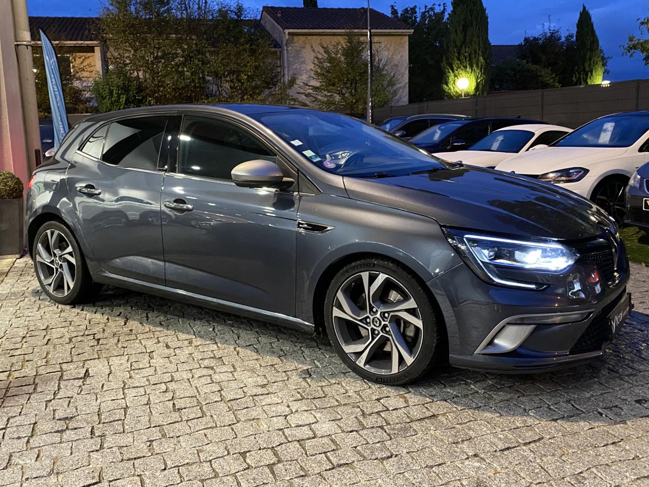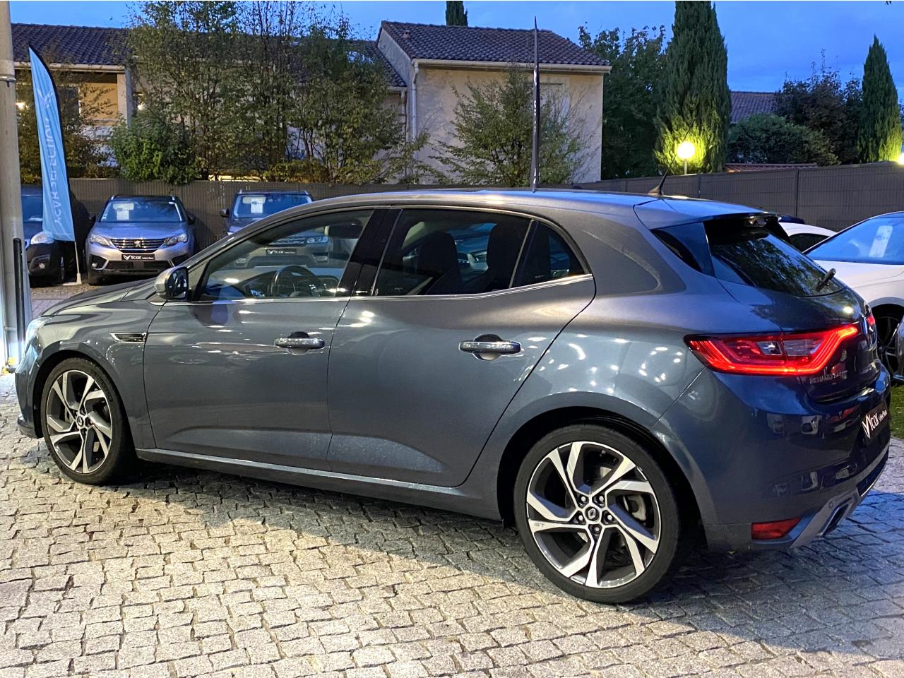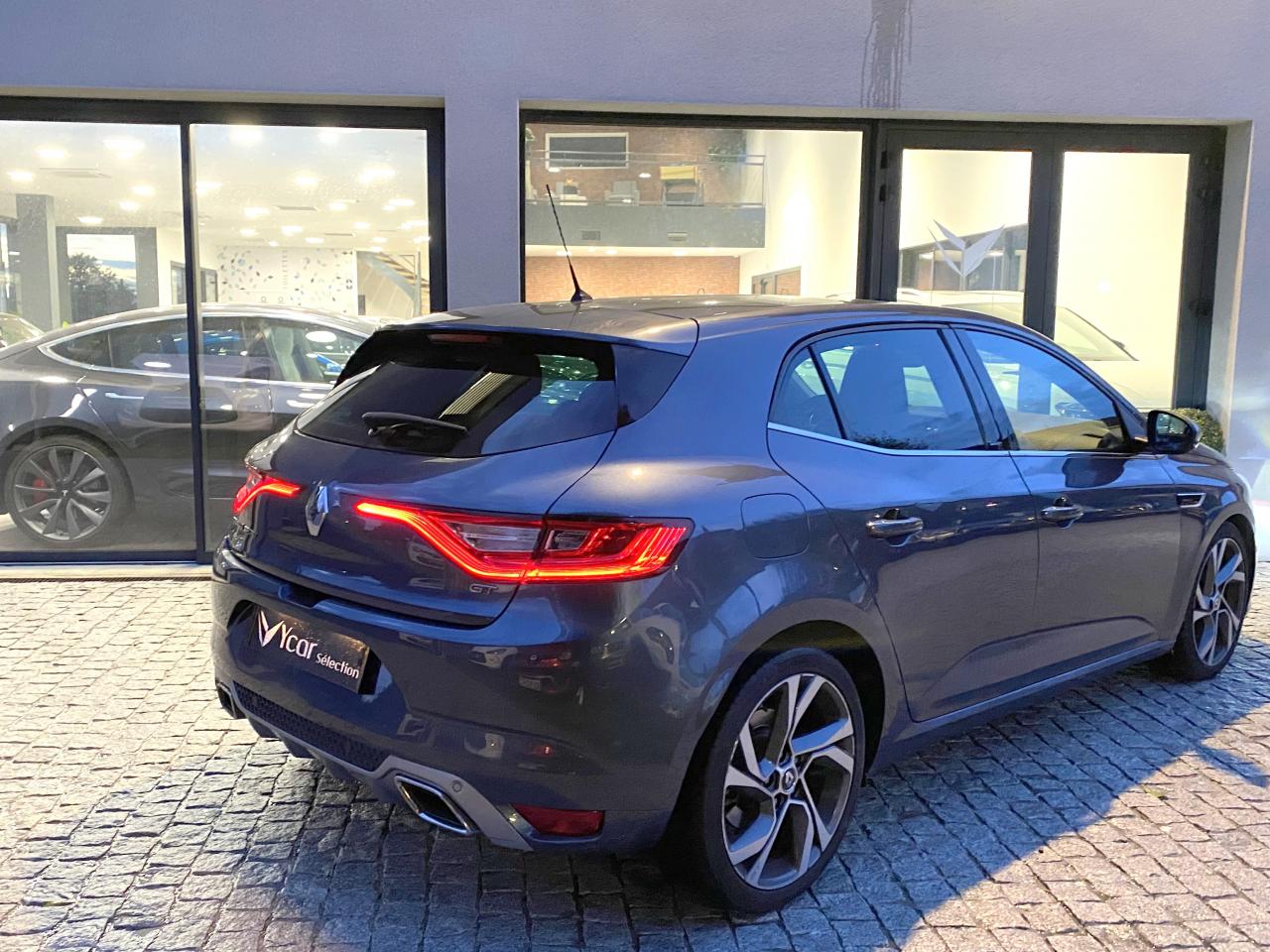 ABS avec aide au freinage d'urgenceAide au démarrage en côteAide au stationnement arrièreAirbags frontaux conducteur et passager adaptatifs (airbag passager déconnectable)Airbags latéraux (thorax / bassin) avantAirbags rideaux de têtes aux places avant et arrièreAlerte de franchissement de ligneAlerte de survitesse avec reconnaissance des panneaux de signalisationBanquette arrière rabattable 1/3-2/3Boîte à gants éclairéeBouclier avant spécifique avec écopes intégrées et entrée d'air élargie (sans antibrouillard)Boucliers avant et arrière spécifiques GTBouton d'activation RS DriveCapteur de toxicité avec recyclage d'airCapteurs de pluie et de luminositéCarte Renault mains-libres (accès, démarrage, condamnation à l'éloignement)Châssis et suspensions Renault Sport TechnologiesClignotant à impulsionClimatisation automatique bizoneCommutation automatique des feux de croisement et de route, Light AssistCompatibilité Apple CarPlay et Android AutoCompteur digital TFT 7“ avec matrice couleurCondamnation automatique des ouvrants en roulantCondamnation centralisée des portesCondamnation des vitres électriques arrière au poste de conduiteConsole centrale avec accoudoir et compartiment de rangementContrôle dynamique de trajectoire (ESC)Double canules d'échappement intégrées au diffuseurEclairage d‘ambiance sur les panneaux de portes avant et arrièreEclairage plafonnier avant et arrière à LEDFeux de jour à guide de lumière LED et effet 3DFrein de parking assistéGrille de calandre nid d'abeilles noire avec badge GTIndicateur de changement de vitessesJantes alliage 18“ Magny-CoursKit de réparation des pneusLécheurs de vitres chromésLève-vitres arrière électriques impulsionnelsLève-vitres avant électriques impulsionnelsMultichange down (système de rétrogradage avancé)Pack CityPack R-Link 2Pack SécuritéPalettes au volant en aluminiumPédalier en aluminiumPoche aumônière au dos du siège conducteurPoignées de portes extérieures avec jonc chroméPoignées de portes ton caissePré-équipement alarmePrise 12 V à l'arrièrePrise 12V à l'avantProgramme Eco-modeProjecteurs avant Full Led Pure VisionRégulateur et limiteur de vitesseRenault Multi-SenseRépétiteurs de clignotant à LED intégrés aux rétroviseursRétroviseur intérieur automatique jour/nuitRétroviseurs Dark MetalRétroviseurs extérieurs électriques et dégivrantsSellerie alcantara GT noire & surpiqûres bleuesSéquence d‘accueil à l‘approche du véhicule avec éclairage de signature lumineuse et éclairage de solSeuils de portes chromésSiège conducteur avec réglage lombaireSiège conducteur réglable en hauteurSiège passager réglable en hauteurSièges avant chauffantsSièges sport GT avec appuis-têtes intégrésSignature latérale et arrière GT/Renault SportSystème 4-control (Chassis à 4 roues directrices)Système de fixations ISOFIX aux 2 places latérales arrièreSystème de freinage spécifique GTSystème de Launch Control (Aide aux départs arrêtés)Système de surveillance de la pression des pneusVitres et lunette arrière surteintéesVolant et pommeau de levier de vitesse en cuir Nappa perforé GTVolant réglable en hauteur et en profondeur