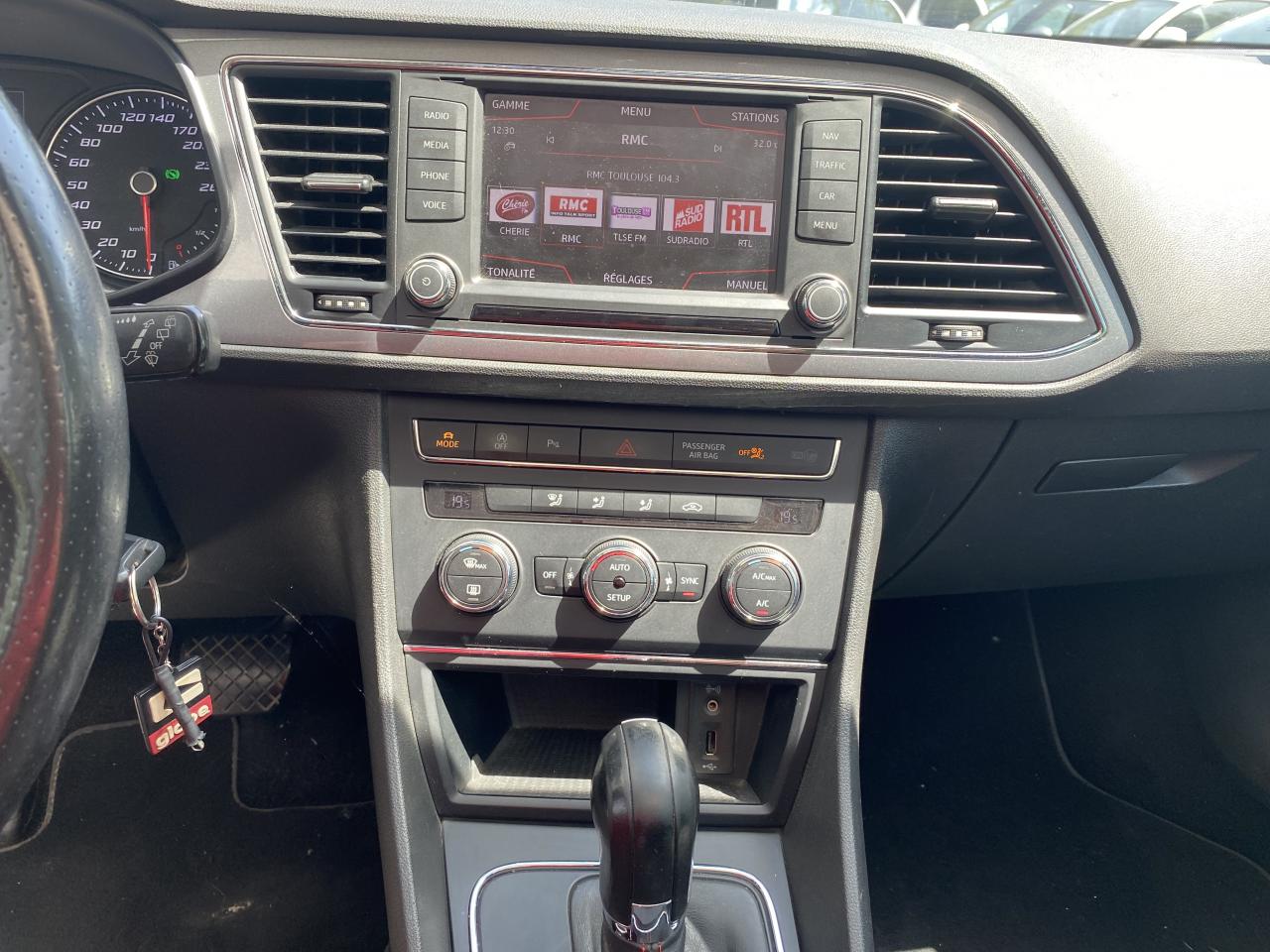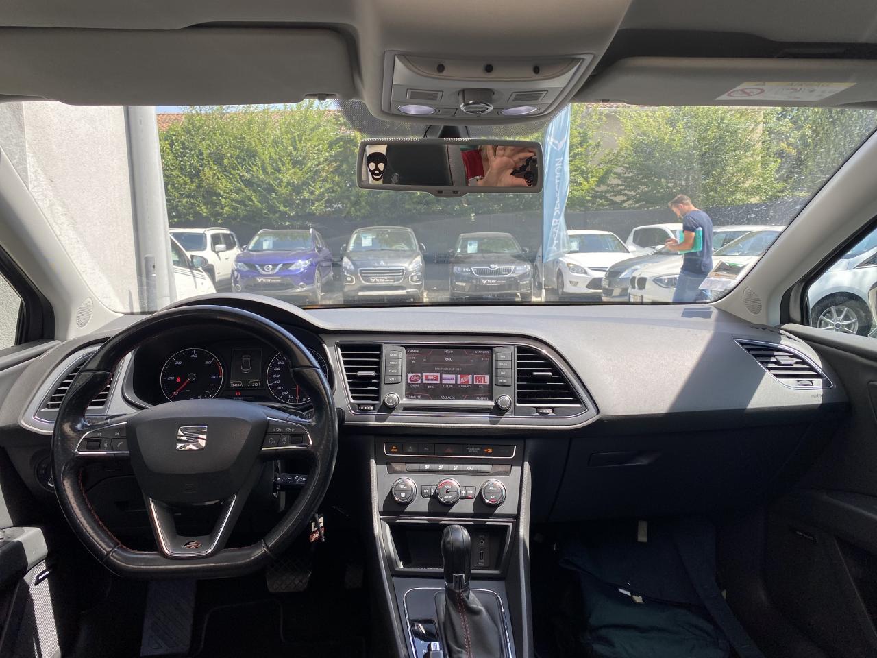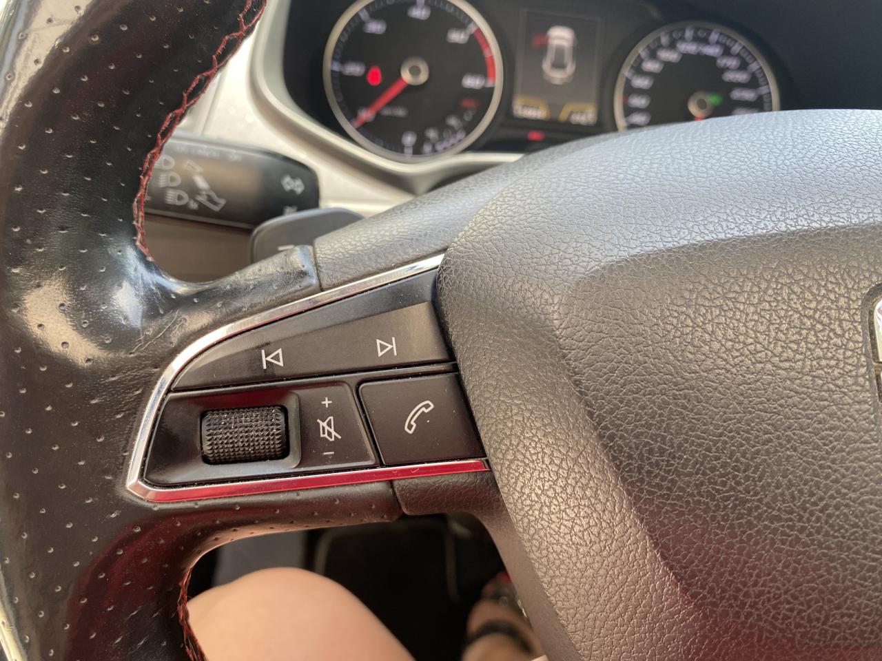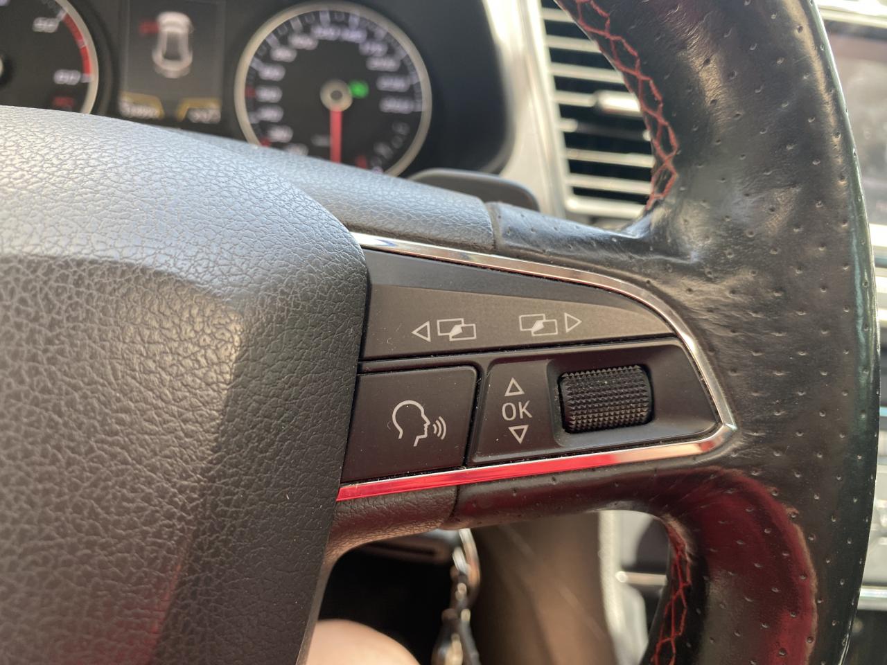 7 Airbags (2 avant / 2 rideaux / 2 latéraux / 1 genoux conducteur)8 haut-parleursAccoudoir central avantAlerte de non-bouclage des ceintures à l'avantASR + ABSBanquette arrière rabattable 1/3-2/3Barres de toit chroméesBluetooth avec audio-streamingCaméra de reculCapteurs de pluie et de luminositéCarte SDClimatisation automatique bi-zone “Climatronic"Commande vocaleConnexion USBCrochets d'arrimage dans le coffreDésactivation de l'airbag du passager avantDouble sorties d'échappement chroméeEclairage d'ambiance personnaliséEcran tactile 6,5 "ESC avec alerte de pression des pneumatiquesFeux arrière à LEDFixations Isofix sur sièges arrièreFull Link (MirrorLink + Android Auto + Apple CarPlay)Garantie 2 ans, kilométrage illimitéGPS Europe tactileIndicateur de changement de rapport de vitesseJantes alliage 17'' 'Dynamic'Kit anti-crevaisonLecteur CDOrdinateur de bord 3,5'' avec affichage de la température extérieurePare-chocs spécifiques FRPare-soleil avec miroir de courtoisie, avec porte-carte côté conducteurPeinture Rouge EmocionPetit Pack CuirPhares avant Full LEDPoignées de portes et rétroviseurs extérieur couleurs carrosseriePrise 12V à l'avantPrise auxiliaireProjecteurs antibrouillardRadars de stationnement avant/arrière, avec visualisation sur l'écran radioRéglages lombairesRégulateur de vitesseRétroviseur intérieur jour et nuitRétroviseurs extérieurs électriques et dégivrantsRétroviseurs extérieurs rabattables électriquementSEAT Drive Profile 4 modes de conduiteSiège conducteur réglable en hauteurSièges Sport tissus/simili cuirSpots de lecture à l'avantSuspension sportSystème break « 1 seconde »Verrouillage centralisé à distance à télécommande, avec verrouillage de la trappe à carburantVitres arrière électriquesVitres arrières surteintéesVitres avant électriquesVolant à méplat FR avec palettesVolant multifonctionXDS et aide au démarrage en côte